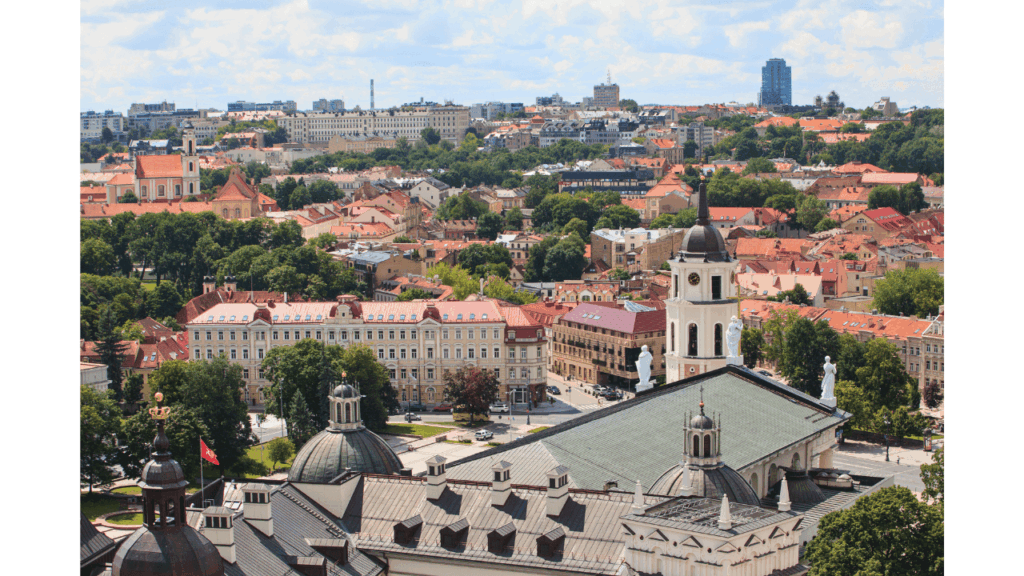 空港周辺は緑が多く穏やかな雰囲気ですが、市内に入ると社会主義時代に建てられた団地やモノトーンの建物が並び、独特の景観が広がります。