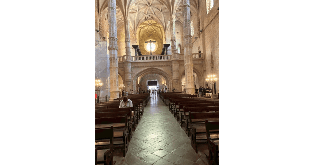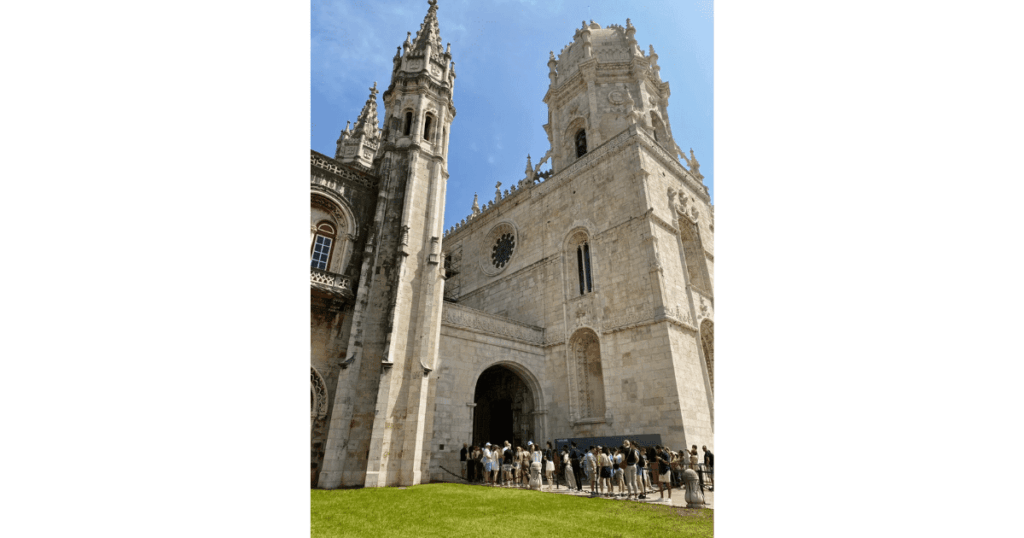 ジェロニモス修道院はリスボン屈指の人気スポットのため、朝一番での訪問がおすすめです。入り口は正面左手が修道院の入場列、右側が教会の入場列に分かれており、圧倒的に混むのは修道院側。まずは修道院の列に並びましょう。