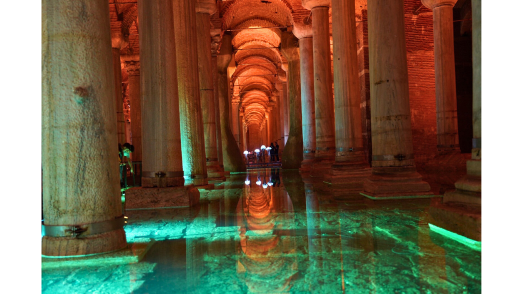 幻想的な照明が美しく、メドゥーサ像も有名なスポット。